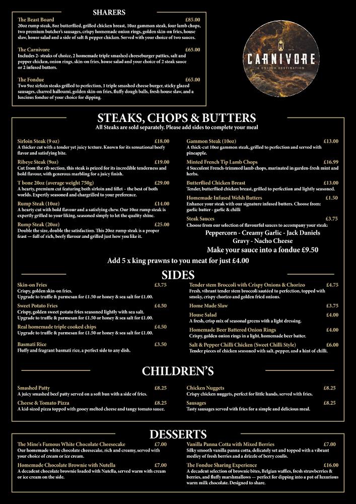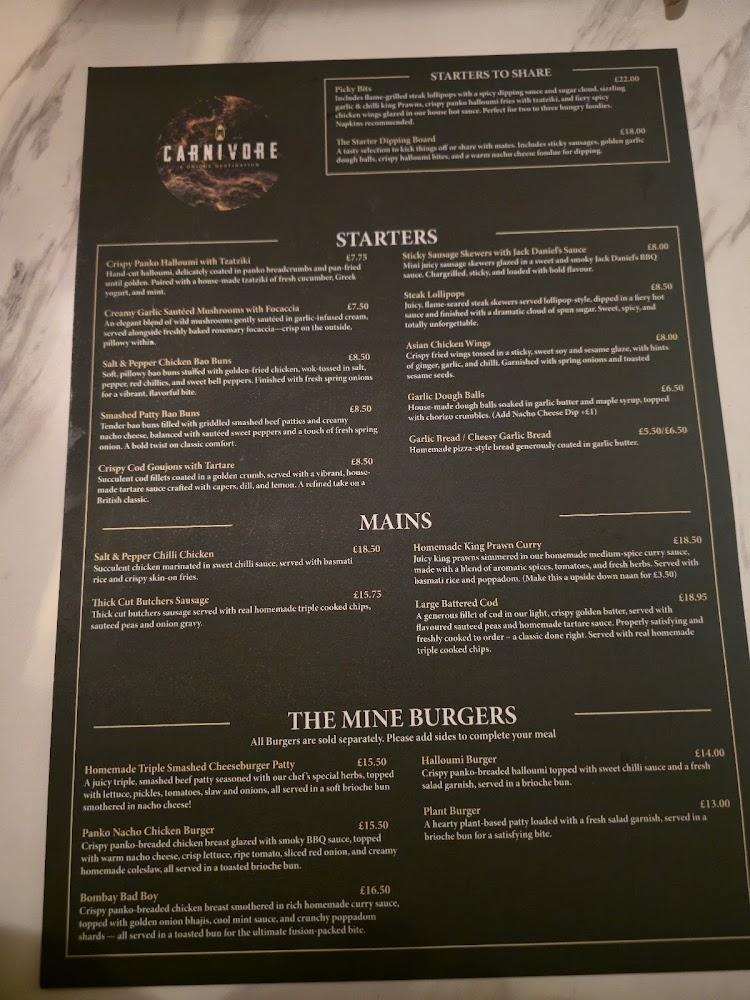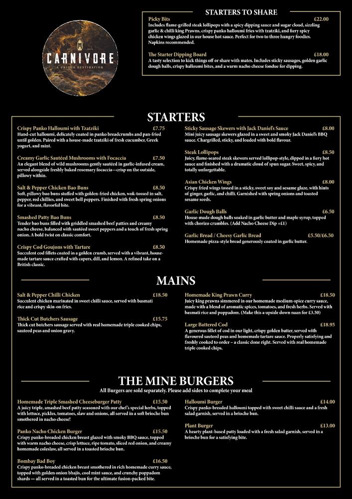 The menu at Carnivore By The Mine is a testament to the art of delicious dining, offering diverse options that cater to various tastes and preferences. From starters designed for sharing, like the Picky Bits and The Starter Dipping Board, to mouthwatering mains, every dish aims to delight and satisfy. Popular choices include the Salt & Pepper Chilli Chicken and the Homemade King Prawn Curry, both highlighted for their flavor-packed profiles.